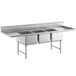 Regency 112" 16 Gauge Stainless Steel Three Compartment Commercial Sink with (2) 24" Drainboards, Stainless Steel Legs, and Cross Bracing - 20" x 30" x 14" Bowls