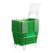 Constructed of durable plastic, the baskets are both resilient as well as light weight. Steel handles provide added support and strength and include grips for additional comfort. The design of the basket does not allow for any water buildup, making it capable of being kept outside of your establishment as well as inside, without worry of water being tracked inside. For added convenience, the smooth plastic construction is also easy to clean and maintain.