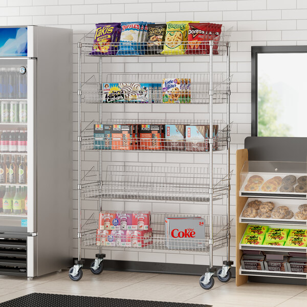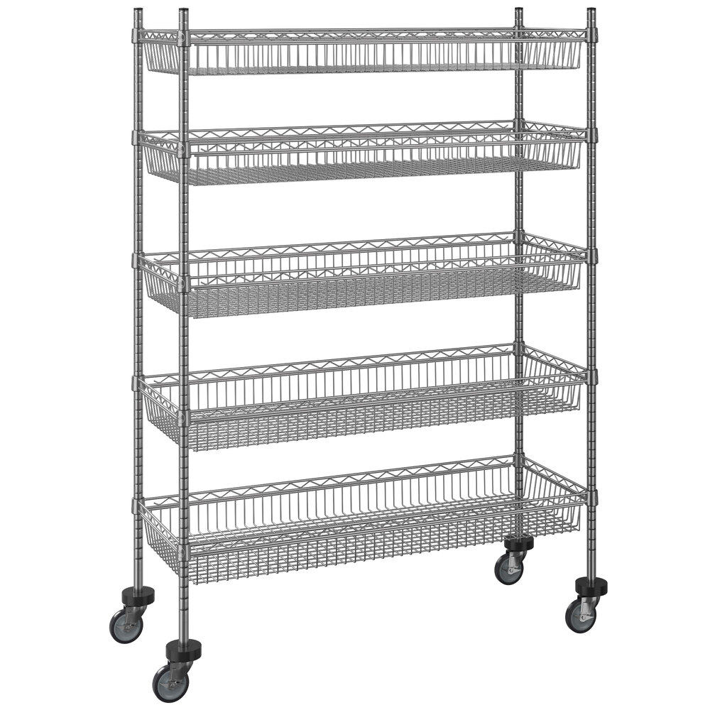 - Item #: 460ec1848pc5Regency NSF Chrome Mobile 5 Basket Storage Display Stand - 18" x 48" x 80"