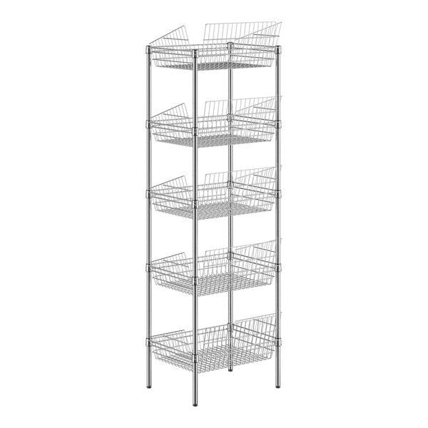 Regency NSF Chrome Stationary 5 Basket Storage Display Stand - 18" x 24" x 74"
