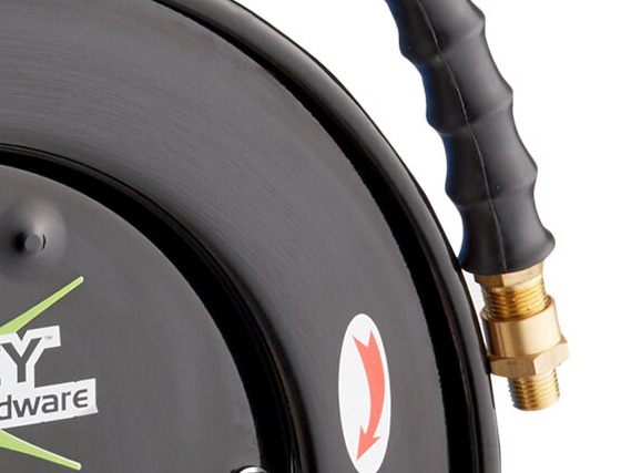 • Corrosion-resistant, powder-coated steel reel houses 50' hose
