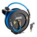 This reel includes a single guide arm for precise control over the hybrid polymer hose, which pulls and retracts smoothly and effortlessly for optimal performance. It has a locking mechanism that allows the hose to be stopped at any point to meet the users preferred length. It also includes a speed control device with a retraction time that is twice as slow as other models, which ensures safe and secure use when rewinding the hose.