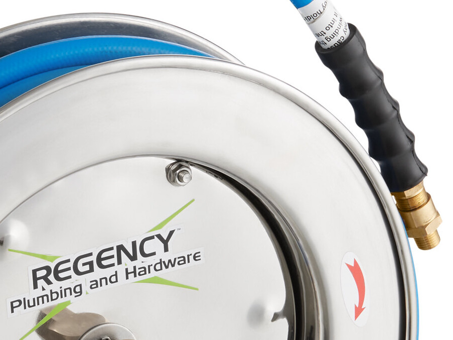 - Item #: 600hrss35fwgRegency Open Stainless Steel Hose Reel with 35' x 3/8" Hose and Heavy-Duty Front Trigger Water Gun