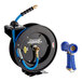 The reinforced steel-stamped flange adds additional strength to the reel, while the spring reducer prevents wear to maintain the integrity of the hose. Additional features include the swivel joint that prevents leakage and the hose stopper that can automatically stop the retracting hose. This unit has a 3/8 inlet / outlet and it is rated to 300 PSI.