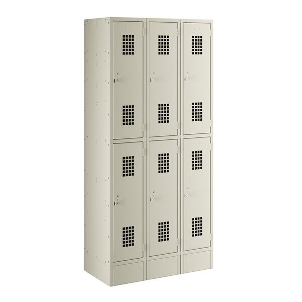 Boasting a tough steel construction with a beige finish, this locker with 6 compartments is durable enough to withstand heavy, extended use. It's perfect for maximizing floor space for increased storage. For your convenience, it ships fully assembled.