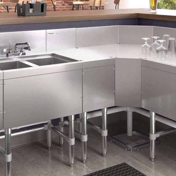 This Regency Spec Line 12" x 24" stainless steel underbar drainboard provides space for your freshly washed glasses to dry, allowing you to quickly and easily prep mojitos, Long Island iced teas, beer, or any number of your popular beverages.