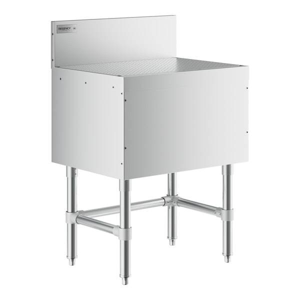This Regency Spec Line 24" x 19" stainless steel underbar drainboard provides space for your freshly washed glasses to dry, allowing you to quickly and easily prep mojitos, Long Island iced teas, beer, or any number of your popular beverages.