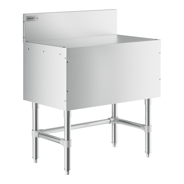 This Regency Spec Line 30" x 19" stainless steel underbar drainboard provides space for your freshly washed glasses to dry, allowing you to quickly and easily prep mojitos, Long Island iced teas, beer, or any number of your popular beverages.