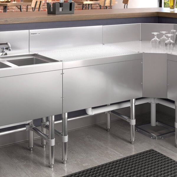 This Regency Spec Line 30" x 24" stainless steel underbar drainboard provides space for your freshly washed glasses to dry, allowing you to quickly and easily prep mojitos, Long Island iced teas, beer, or any number of your popular beverages.