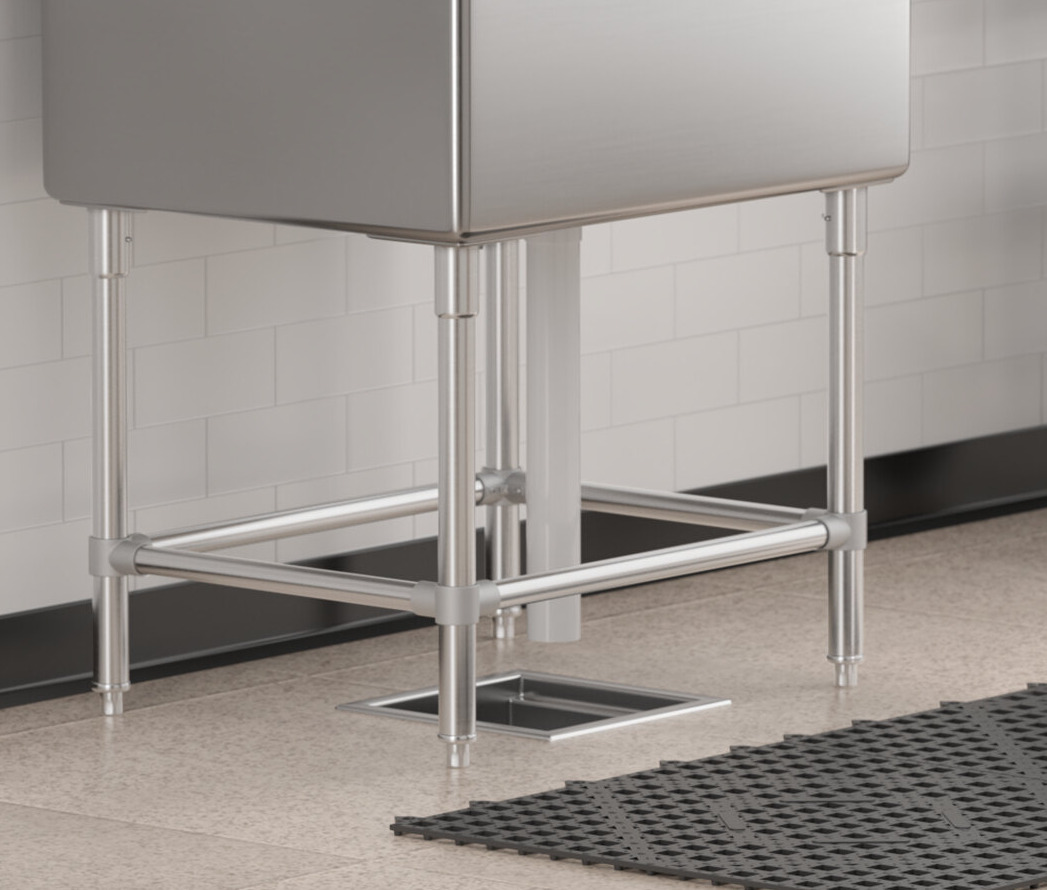 This sink sits on 4 stainless steel legs, which feature adjustable stainless steel bullet feet to accommodate uneven floors. The stainless steel legs provide your sink with a solid, reliable foundation to rest upon, so you always have somewhere to wash, rinse, and sanitize dirty dishes.