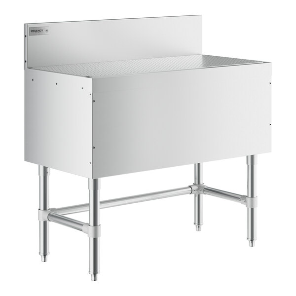 This Regency Spec Line 36" x 19" stainless steel underbar drainboard provides space for your freshly washed glasses to dry, allowing you to quickly and easily prep mojitos, Long Island iced teas, beer, or any number of your popular beverages.