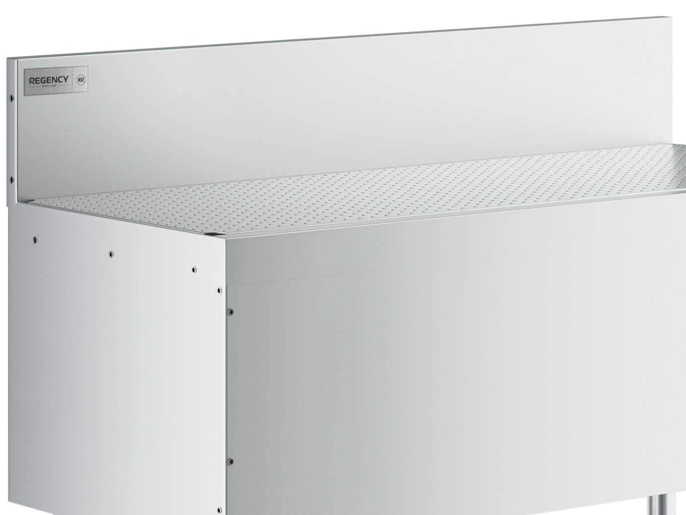 This Regency Spec Line underbar drainboard has a perforated drainboard top that is removable for added convenience and ease of use.