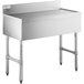 The sturdy stainless steel legs with U-shaped cross bracing and plastic bullet feet ensure stability during use. This stainless steel underbar drainboard has a durable and efficient design, making it the perfect addition to your restaurant or bar.
