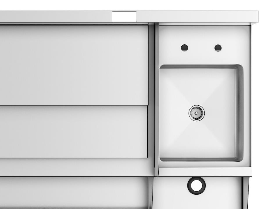 Featuring a 12" recessed drainboard with a drain and removable perforated insert, this cocktail station simplifies cleanup and maintenance. Elevate your bar service with this efficient and durable cocktail station that is designed to streamline operations and enhance the overall customer experience.