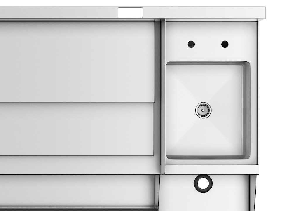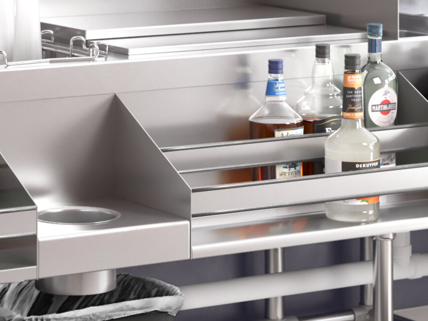 Featuring a 12" recessed drainboard with a drain and removable perforated insert, this cocktail station simplifies cleanup and maintenance. Featuring a liquor display rack, this cocktail station expands your available liquor selection and provides a sleek presentation. Elevate your bar service with this efficient and durable cocktail station that is designed to streamline operations and enhance the overall customer experience.