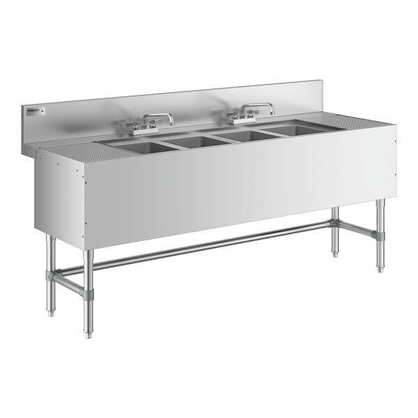 Regency Spec Line Stainless Steel Four Bowl Underbar Sink with (2) 12" Drainboards and 2 Faucets - 24" x 72"