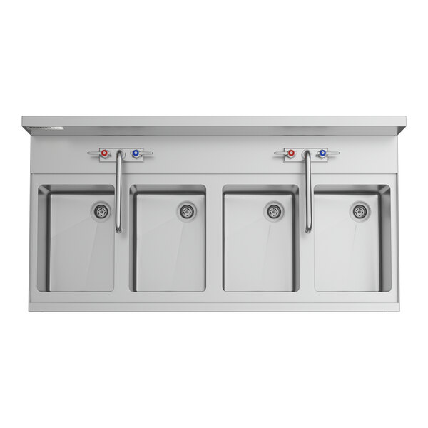 Regency Spec Line Stainless Steel Four Bowl Underbar Sink with 2 Faucets - 24" x 48"