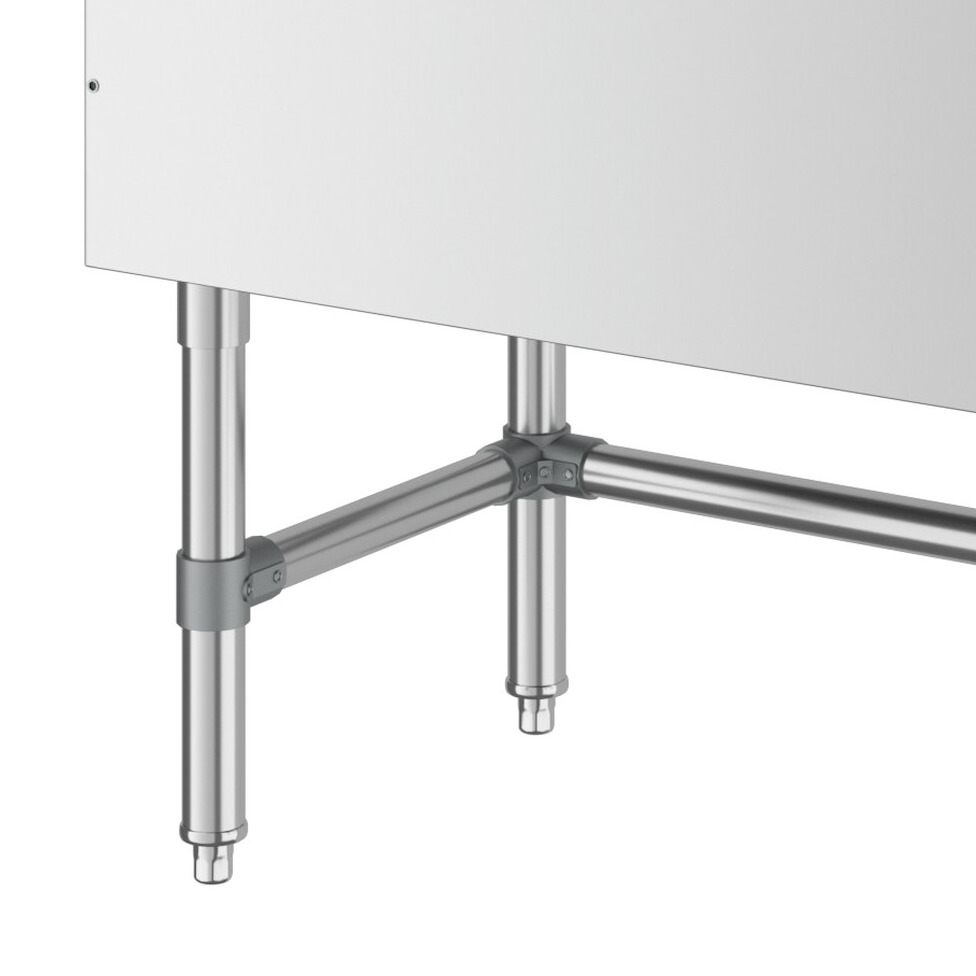 This underbar sink is constructed from 18 gauge type 304 stainless steel for corrosion resistance and optimal durability. It sits on four stainless steel legs to provide your sink with a solid, reliable foundation to rest upon. Additionally, this sink features U-shaped cross bracing for maximum stability.