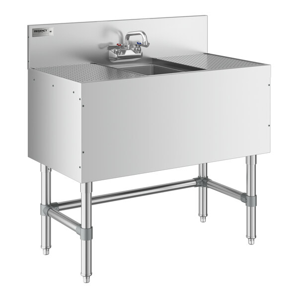 Regency Spec Line Stainless Steel One Bowl Underbar Sink with (2) 12" Drainboards and Faucet - 19" x 36"