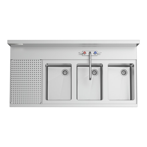 - Item #: 60b3244812lksRegency Spec Line Stainless Steel Three Bowl Underbar Sink with 12" Left Drainboard and Faucet - 24" x 48"