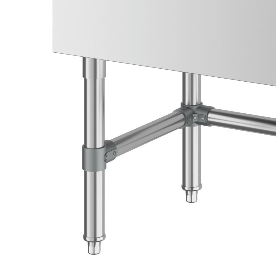This underbar sink is constructed from 18 gauge type 304 stainless steel for corrosion resistance and optimal durability. It sits on 4 stainless steel legs to provide your sink with a solid, reliable foundation to rest upon. Additionally, this sink features U-shaped cross bracing for maximum stability.