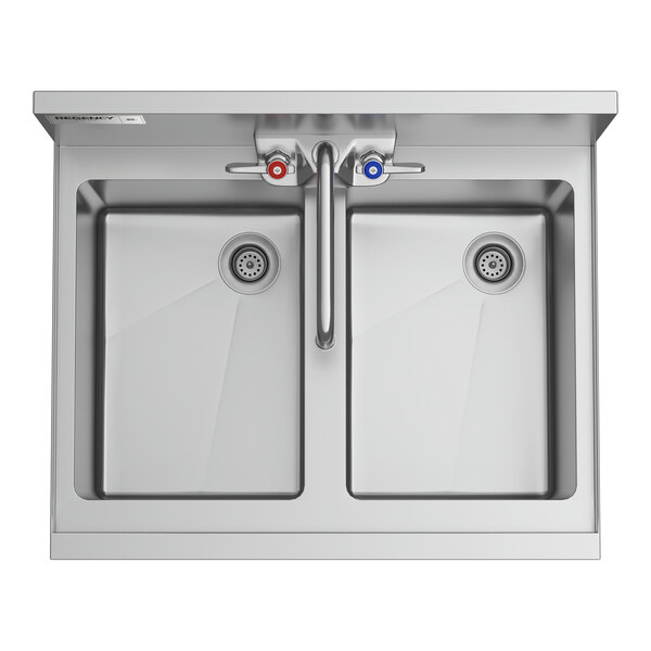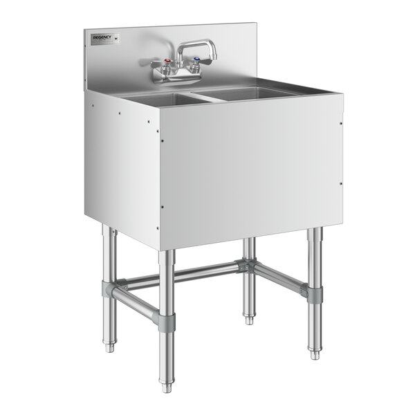 Regency Spec Line Stainless Steel Two Bowl Underbar Sink with Faucet - 19" x 24"