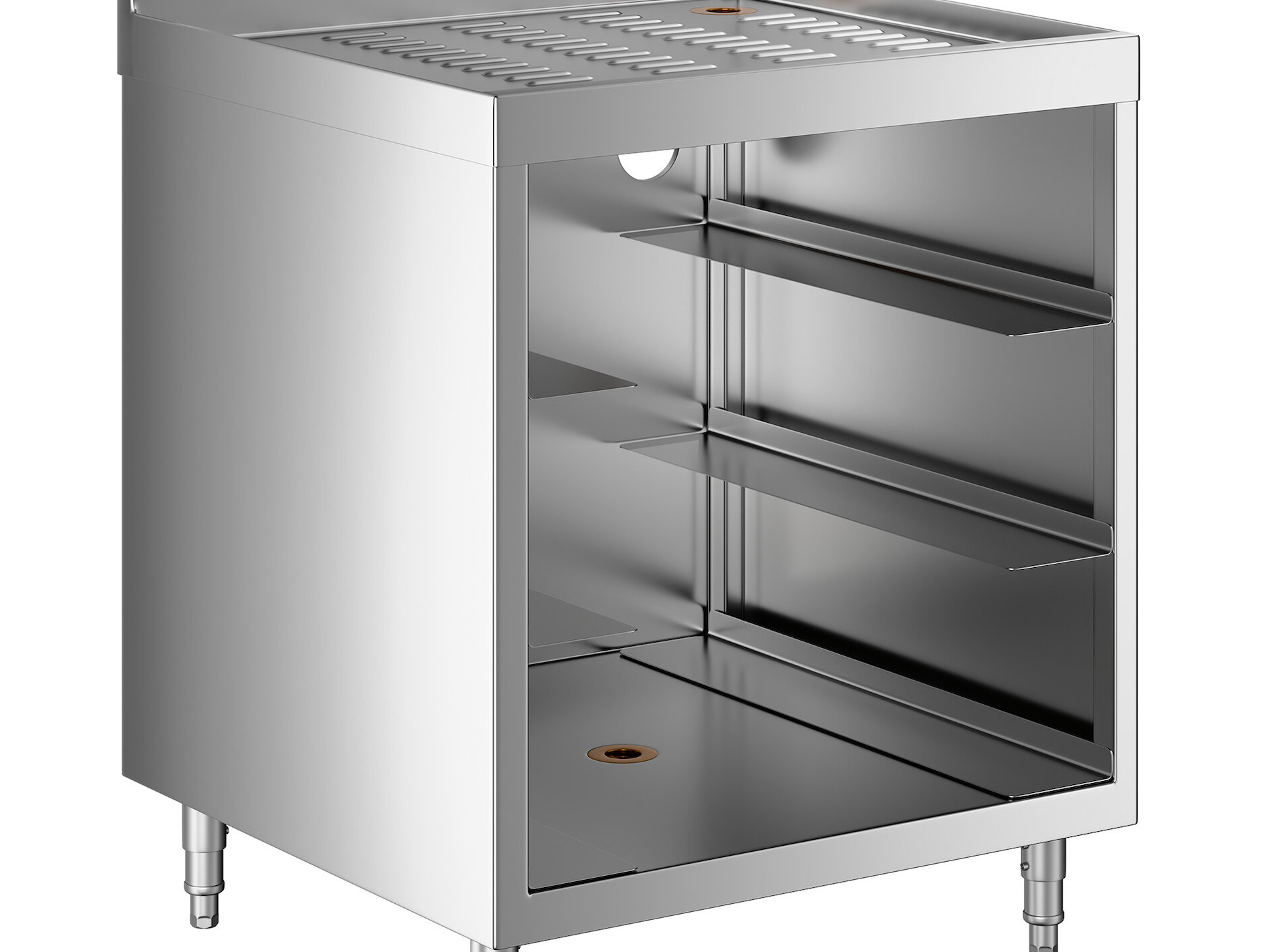 Designed to hold glass racks in sanitary conditions and add working space, this storage unit fits right in with your other stainless steel bar equipment! This cabinet is made to hold items close to where you need them while keeping them protected from contamination or breakage.