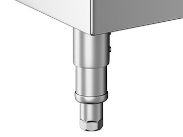The 6" stainless steel legs and bullet feet keep the cabinet up off the floor for sanitary storage. Plus, the legs give you enough clearance to clean beneath the cabinet.