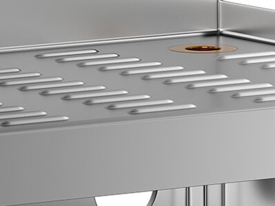 • Corrugated top and stainless steel legs and feet