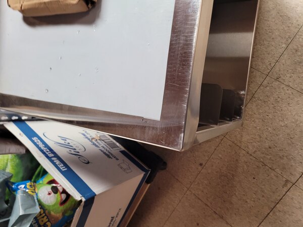 Thank you for your feedback! We are sorry your Regency Stainless Steel Corrugated Top Glass Rack Storage Unit - 23 inch x 24 inch was damaged. Please reach out to our Customer Solutions team as soon as you notice an issue with your purchase so we can help you in the best way possible!