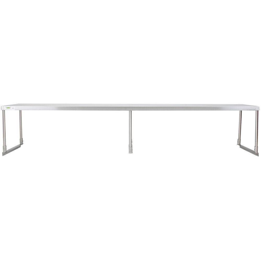 This overshelf allows you to maximize the available space of your kitchen. Its stainless steel construction ensures long-lasting durability to stand up to repeated use. The shelf is made of 18 gauge, type 430 stainless steel for excellent corrosion resistance and durability. This overshelf allows you to better organize your spices and seasoning, pans, cotton towels, oven mitts, and other frequently used cooking and preparation items. For your convenience, it holds up to 780 lb. of weight.