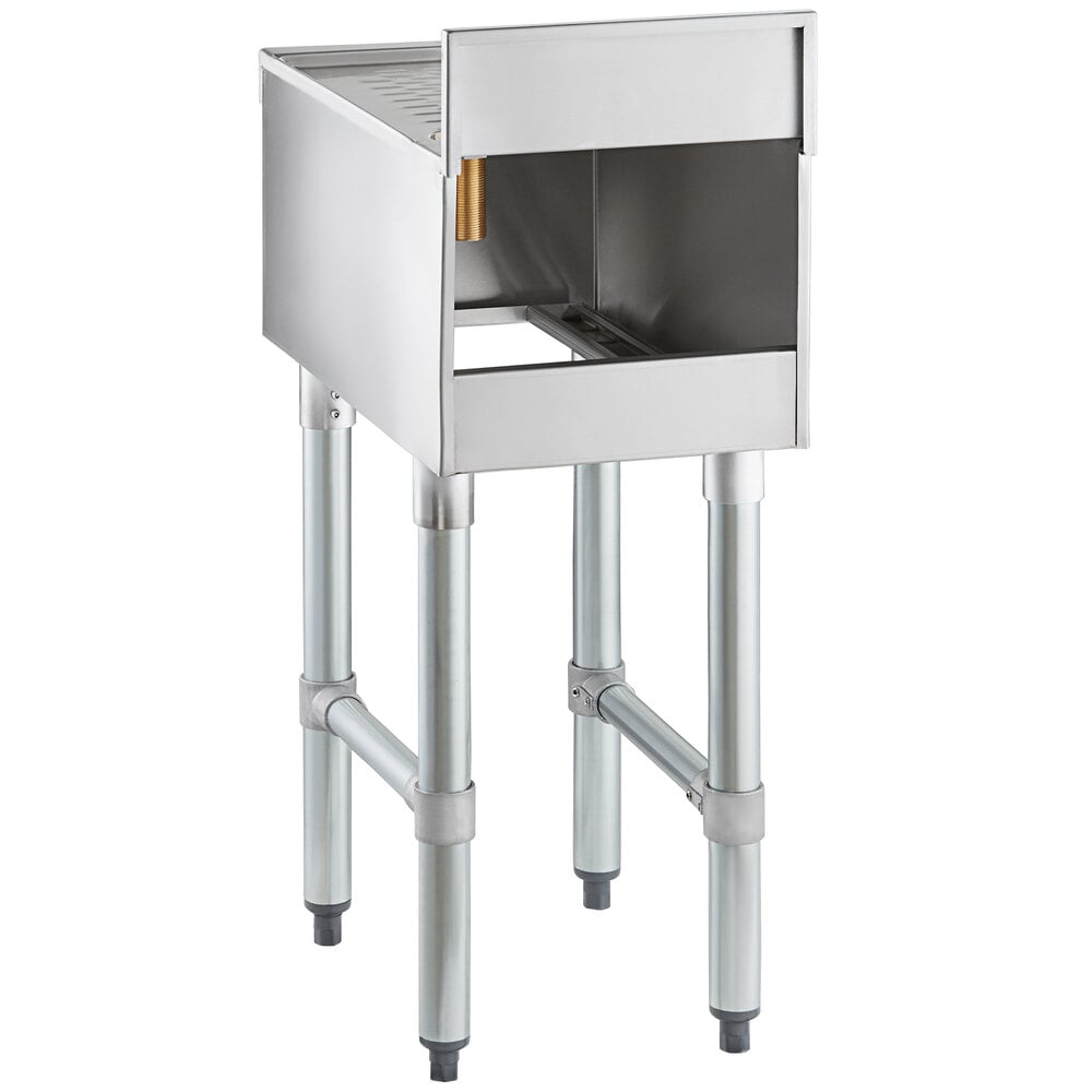 The 18-gauge drainboard is designed for exceptional durability and years of high-volume use thanks to its strong type 304 stainless steel construction. This underbar drainboard has sturdy galvanized steel legs with stainless steel sockets and plastic bullet feet to ensure stability during use.