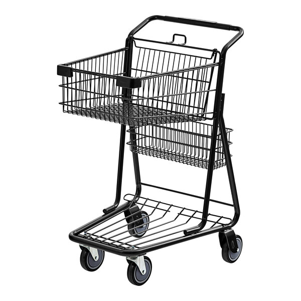 A perfect addition to delis, supermarkets, bodegas, and any other retail operation where carrying assistance is needed, this cart is just what your shoppers are looking for. It features a durable zinc finish with an attractive black coating to ensure it will be able to withstand frequent use in your busy, high-traffic establishment. To save on time, this cart ships fully assembled.