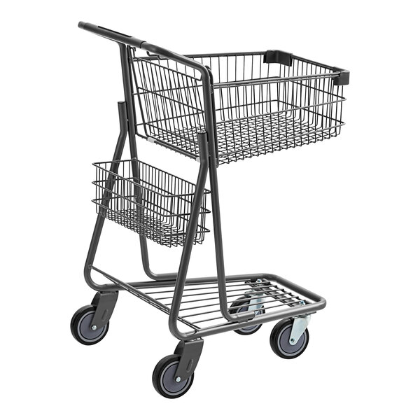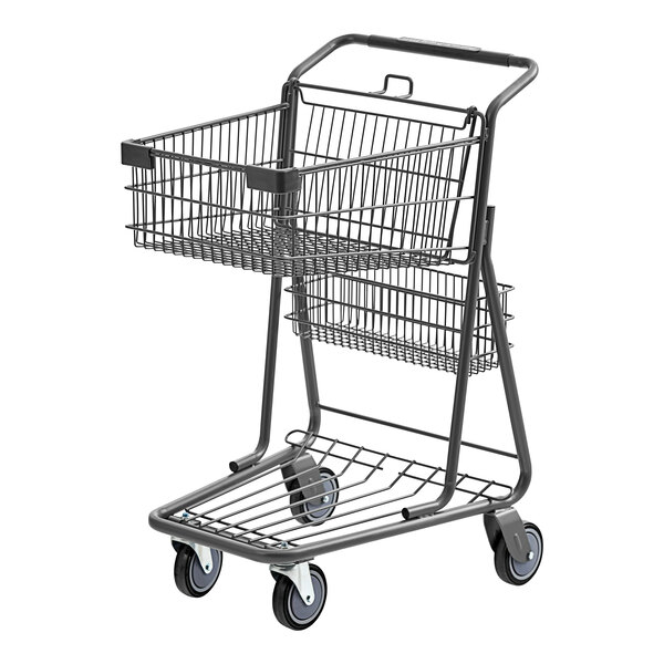 A perfect addition to delis, supermarkets, bodegas, and any other retail operation where carrying assistance is needed, this cart is just what your shoppers are looking for. It features a durable zinc finish with an attractive gray coating to ensure it will be able to withstand frequent use in your busy, high-traffic establishment. To save on time, this cart ships fully assembled.