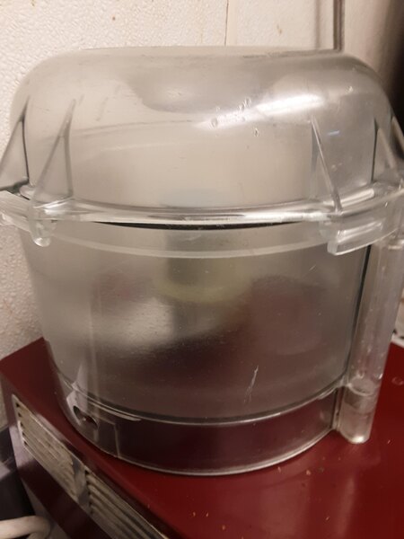 This 3 quart Robot couple bowl is in use most of our work day. Prep happens for processed feta cheese, bacon bits, ground sausage & hummus & dressing mixtures.