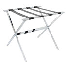 Designed for convenience, this luggage rack features a collapsible frame for quick and simple storage when not in use. It's equipped with four straps that efficiently support luggage and duffel bags, offering a reliable solution for keeping belongings organized and easily accessible. Additionally, it pairs seamlessly with other items in the London collection (sold separately) to create a cohesive and stylish look in any hospitality setting. Elevate your guests' stay with this functional and elegant folding luggage rack!