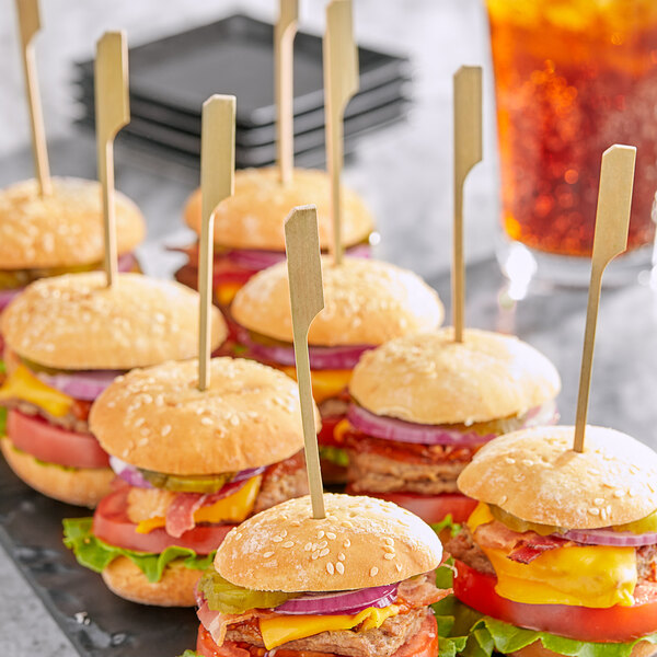 This Eco-Friendly bamboo paddle pick is a great find! These picks are perfect for holding together large burgers or sandwiches and are made of great quality.