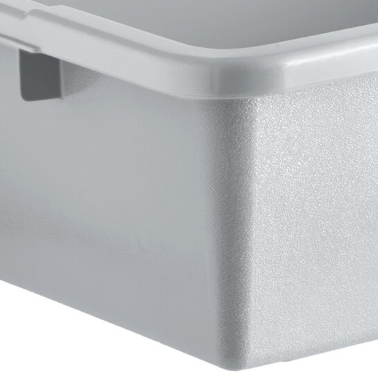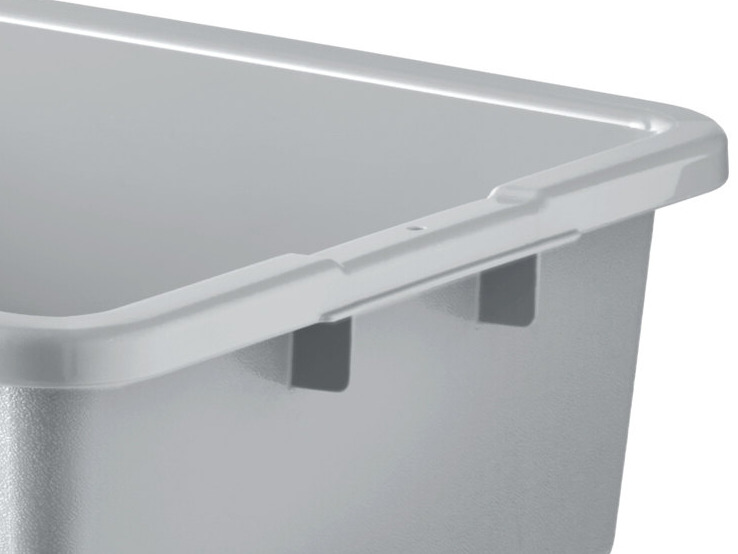 Extra reinforcement points at the handles and all around the outer lip of the bus tub give it added strength where it's needed most. This lets it stand up to constant stacking, slamming, and heavy loads.