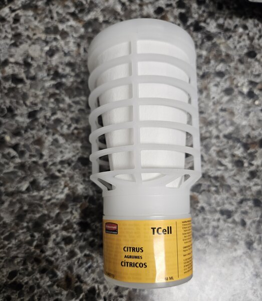 This Rubbermaid Citrus air freshener smells amazing. It lasts about a month and a half before you need to change it. Great price and the quality is top notch. Highly recommend this air freshener.