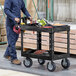 Easily transport a wide variety of products, supplies, or equipment with the Rubbermaid® FG452010 black medium heavy duty two shelf utility cart! This utility cart features a sturdy structural foam construction for maximum durability, and its two shelves are designed to hold a wide variety of items. The rounded corners protect walls and furniture from scratching, and the molded-in storage compartments, holsters, hooks, and notches make it easy to load this cart to the brim with supplies. Both shelves are lipped to help prevent spills, and its ergonomic handle makes it easy to move this cart from place to place. And thanks to its pneumatic wheels, this cart is conveniently mobile.