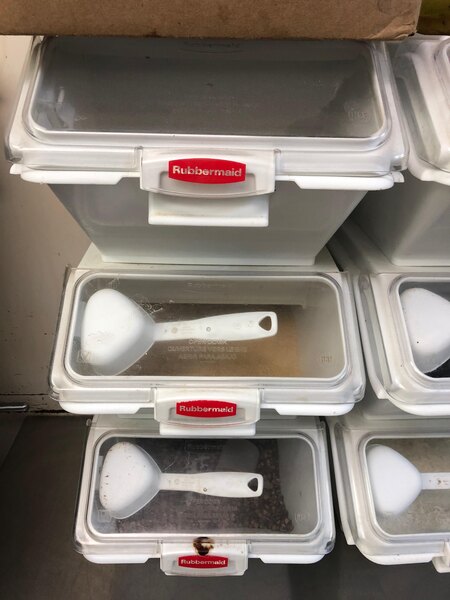 These food bins have worked out very well for my team. They are easy to clean in between uses. The scoop was an added bonus that I did not realize I needed!
