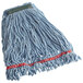 A PVC-coated mesh headband will not become compromised by moisture or chemicals, adding to this mop's durability. It can even be laundered up to 75 times for repeated use. Constructed with up to 35% post-industrial cotton and 45% PET plastic, this mop's content is largely recycled, making it an eco-friendly choice your business can feel good about. Its blue color and headband allow you to color-code it to designate its use around your business, thus reducing the risk of cross-contamination. Reach for this recycled, durable mop to perform a variety of cleaning tasks around your facility!