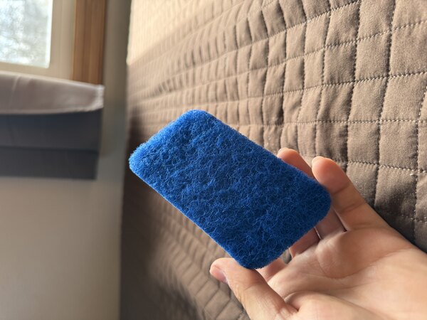 - Reusable scrubber boasts dark blue color with ergonomic shape