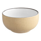 By ordering this Acopa sample, you're able to touch and see it in person to ensure it meets all the unique requirements of your foodservice space before committing to the purchase of a full case. Bring a touch of warmth to your decor with this Acopa Embers 10 oz. hickory brown matte stoneware bowl. This bowl is made of durable stoneware for repeated use in your restaurant, steakhouse, or pub. Its duotone coloring provides great contrast, helping to draw the eye and give your tabletop an inviting feel. The exterior boasts a rustic, dark brown color with a distinctive reactive glaze, while the glossy, bright white interior allows your menu items to pop. This 10 oz. bowl is perfect for serving signature soups and salads thanks to a versatile size and warm style. Pair it with additional matching Acopa Embers stoneware pieces (sold separately) for a look that can't be beat.
