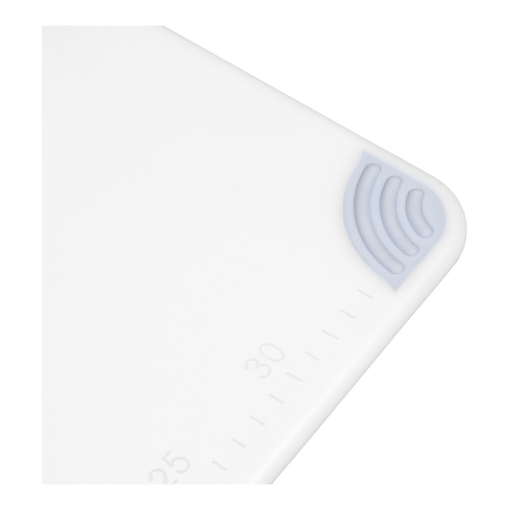 For additional convenience, this board features an embossed ruler with both inch and centimeter graduations to aid in measuring and portioning.