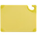 Protect your countertops and knives with this handy San Jamar CBG912YL Saf-T-Grip® 12" x 9" x 3/8" yellow cutting board! Designed to minimize foodborne illnesses by promoting superior safety and sanitation, this item is the perfect addition to any busy commercial kitchen.