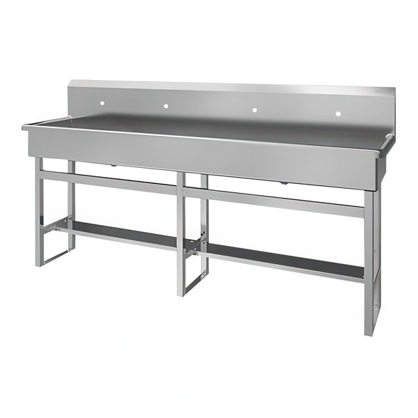 Maintain a sanitary environment in your facility by giving your staff a convenient way to quickly wash their hands with this Sani-Lav 80" x 20" floor-mounted multi-station hand sink with 4 single faucet holes! Made with durable 16 gauge type 304 stainless steel with a sleek satin finish, this durable sink is rust- and corrosion-resistant and built for everyday commercial use. For safety, the outer edge of the sink bowl is curled under to eliminate any sharp edges. Perfect for service industry applications, this easy-to-clean sink will keep your employees healthy.