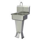 Maintain a sanitary environment in your facility by giving your staff a convenient way to quickly wash their hands with this Sani-Lav 19" x 18" floor-mounted hands-free sink with 1 double foot-operated faucet and side splashes! Made with heavy-duty 18 gauge type 304 stainless steel with a sleek electropolished finish, this durable sink is rust- and corrosion-resistant, helps reduce bacterial growth, and is built for everyday commercial use. For safety, the outer edge of the sink bowl is curled under to eliminate any sharp edges. Perfect for service industry applications, this easy-to-clean sink will keep your employees healthy.