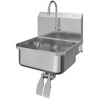 Maintain a sanitary environment in your facility by giving your staff a convenient way to quickly wash their hands with this Sani-Lav 19" x 18" wall-mounted hands-free sink with 1 double knee-operated faucet and side splashes! Made with heavy-duty 18 gauge type 304 stainless steel with a sleek electropolished finish, this durable sink is rust- and corrosion-resistant and built for everyday commercial use. For safety, the outer edge of the sink bowl is curled under to eliminate any sharp edges. Perfect for service industry applications, this easy-to-clean sink will keep your employees healthy.