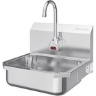 Maintain a sanitary environment in your facility by giving your staff a convenient way to quickly wash their hands with this Sani-Lav 16" x 15 1/2" wall-mounted hand sink with 1 battery-powered faucet and side splashes! Made with durable 18 gauge type 304 stainless steel with a sleek electropolished finish, this durable sink is rust- and corrosion-resistant, helps reduce bacterial growth, and is built for everyday commercial use. For safety, the outer edge of the sink bowl is curled under to eliminate any sharp edges. Perfect for service industry applications, this easy-to-clean sink will keep your employees healthy.
